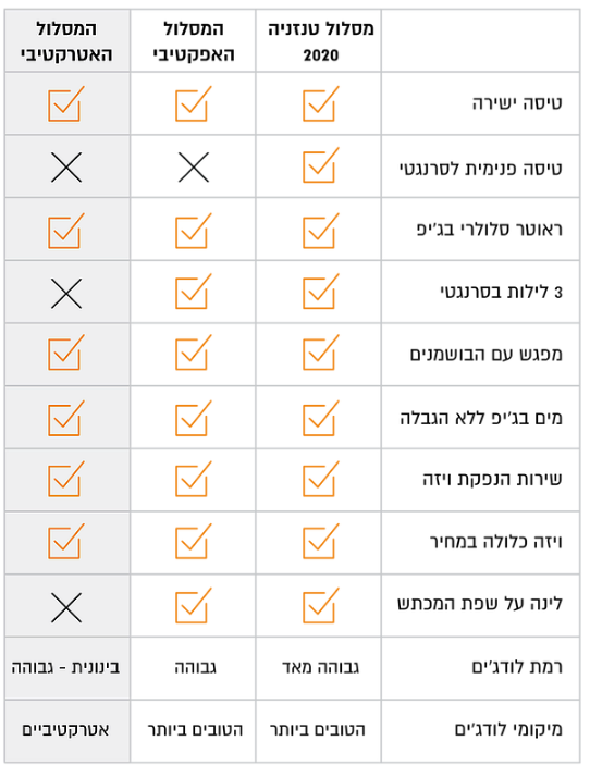 בטנזניה התחלנו לטייל מתחילת שנות ה-2000, כתחליף אטרקטיבי לטיולי הספארי שקיימנו בקניה משנות ה-90. במשך שנים ארוכות שמרנו על פורמט מנצח שהיה מתואם עם רשתות לודג'ים ותיקות שהיו כמעט היחידות בשטח ושהגיעו מקניה (Sopa, Serena). יחסי העבודה שלנו עמם עזרו לייצר מוצר דומה לקניה ששאב אט אט את רוב פעילות הספארי לטובת טנזניה. מאז ועד היום, מדובר במוצר מנצח שעומד במבחן הזמן ונותן תמורה מצוינת לחובבי הספארי.